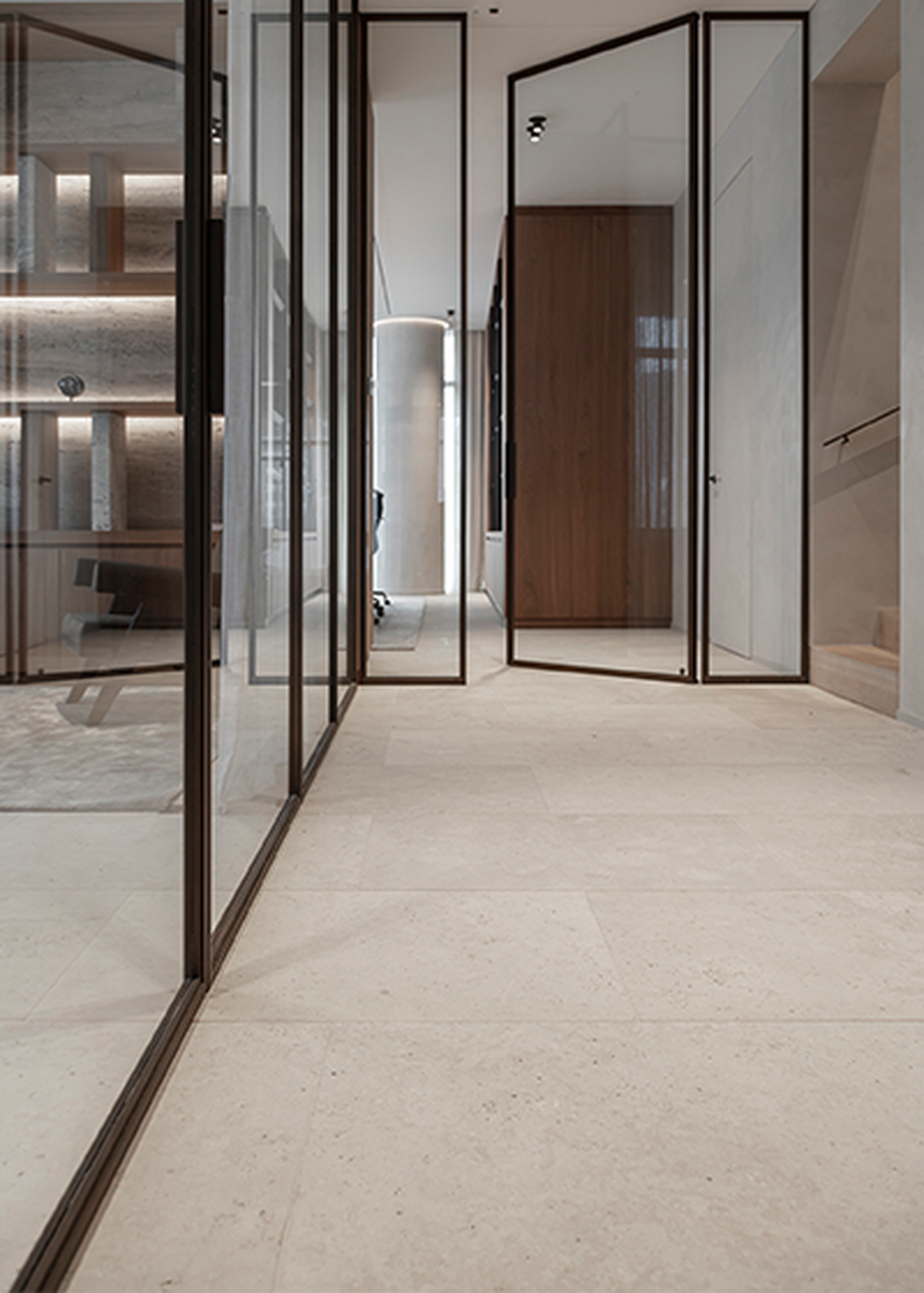 Posadzka (wnętrze) w Travertino Titanium (piaskowane)