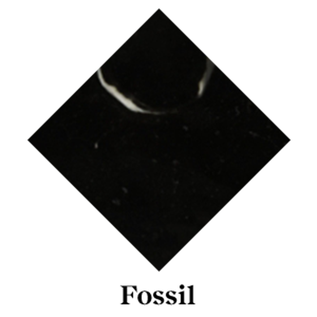 - Fossil: Ten szczególny i charakterystyczny materiał jest pozyskiwany z wąskiej żyły złoża skamielin i zawiera pozostałości ostryg i fragmenty korali, kontrastujące z ciemnym tłem. Te duże skamieliny są unikalne dla kamienia Irish Blue i można je znaleźć tylko w regionie Kilkenny/Carlow w Irlandii.