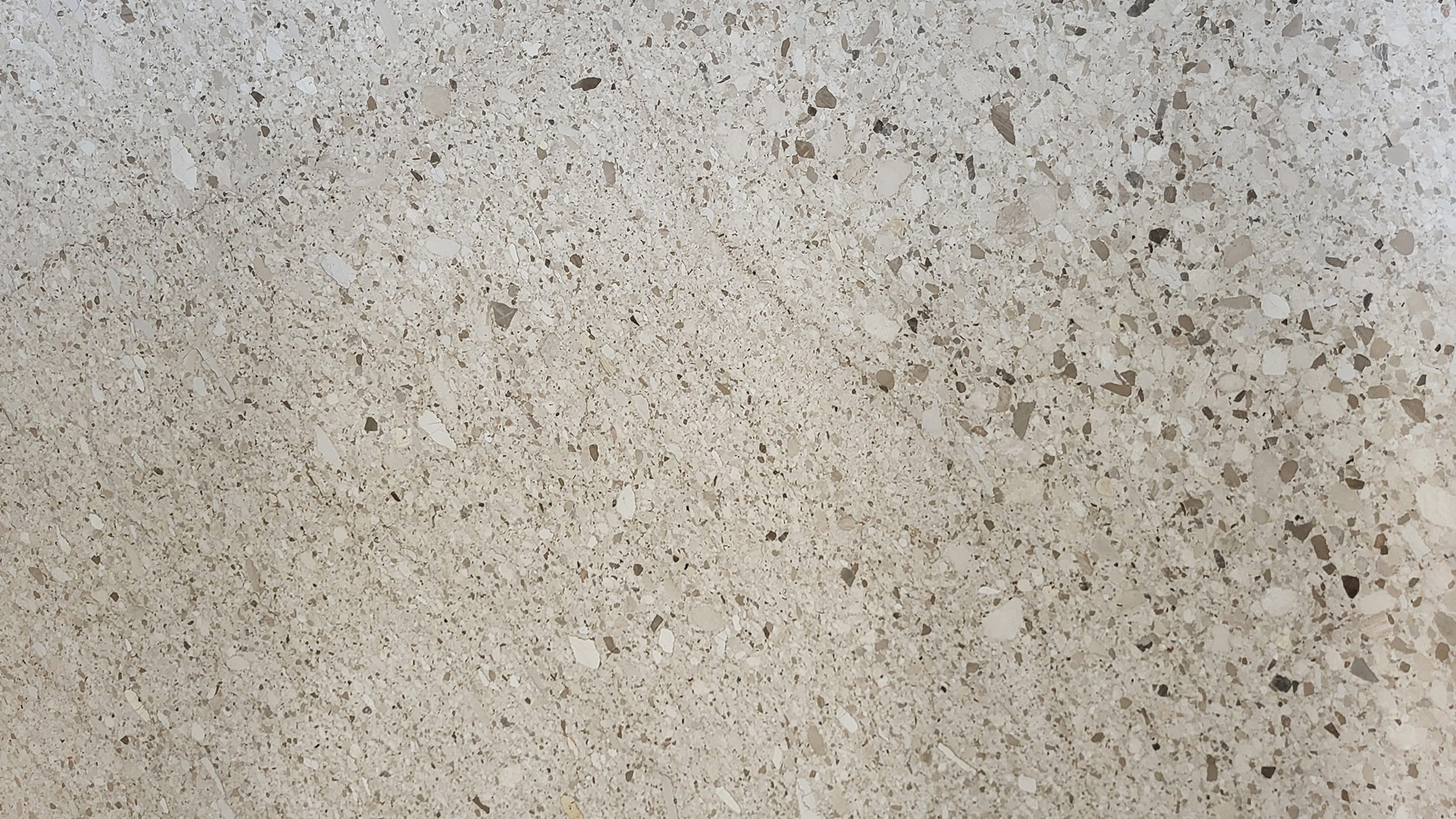 Opis:Beżowo-szary wapień z małymi biało-szarobrązowymi zaokrąglonymi fragmentami rozproszonymi na powierzchni.