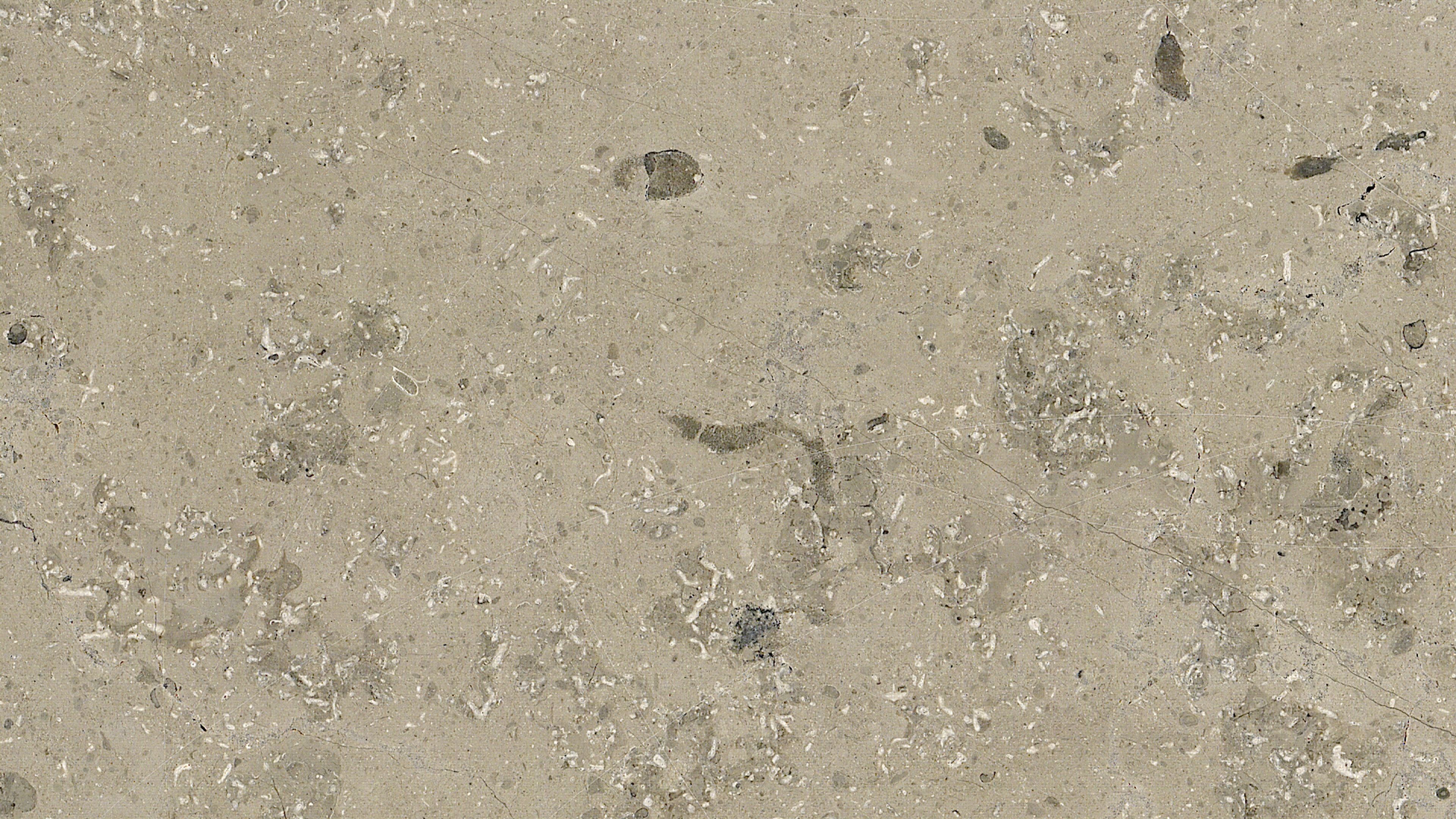 Opis:Osadowy, drobnoziarnisty wapień o beżowo - niebieskoszarej barwie z naturalnymi żyłkami szklanymi lub kwarcowymi i niekiedy licznymi skamieniałościami.